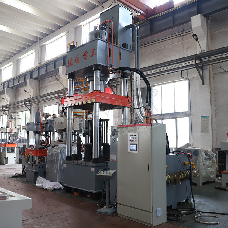 630吨活性炭成型液压机_630吨四柱液压机是山东沃达重工生产的一款多功能四柱液压机,主要用来进行活性炭的挤出压制成型,配备伺服系统和可触屏PLC控制系统,能耗低、噪音小。这款液压机的主要特点是行程、开口比较大,且工作台中间留有下料孔。在实际生产中,被模具挤出的活性炭条通过下模孔、工作台下料口掉落,可以根据客户生产需要配备自动化传送带进行落料收集。