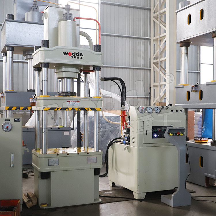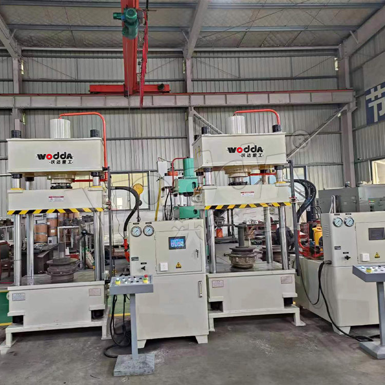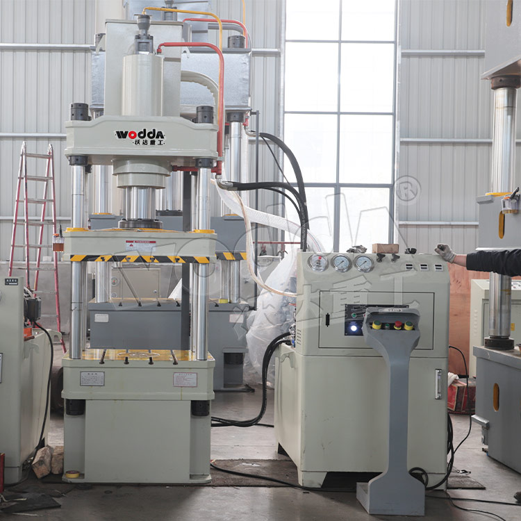 山东沃达重工可以根据用户需求设计定做液压机工作台面大小,比如700x700mm、800x800mm、900x700mm、1000x1000mm等。包括开口高度、油缸行程、吨位、工作速度等都可以设计定做。