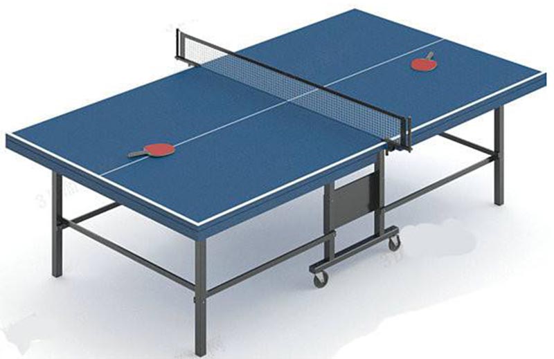 上图展示的是正规大型赛事用的乒乓球台。台面采用高端SMC材料(玻璃钢),台面底部采用网格加强筋结构,且加强筋网格均不大于260㎜×260㎜;台板边框总厚度为58㎜,台面厚18㎜,SMC乒乓球台板具有密度大、弹性好、耐酸碱、耐热、防潮,能长期保持不翘曲、不变形、不开裂、不起皮等性能,且符合TTF检测标准:长2740mm(半边板长1370mm)宽1525mm ,从离台300mm的地方释放乒乓球反弹高度在230~ 260mm的弹性, 摩擦系数<0.6,反光度在MUNSELL系统中不超过15度。