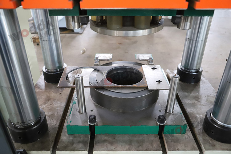 其中500吨锚杆托盘液压机是最常用 一个型号,它可以最大模压300x300x16mm厚的锚杆托盘,像150x150x10mm厚和120x120x10mm换上锚索托盘模具都可以兼容一次性模压成型。如果只模压150x150x10mm厚以下的小型锚索托盘,用200吨锚杆托盘液压机或315吨锚杆托盘液压机都可以。如果需要一次模压成型300x300x20mm厚的锚杆托盘,则需要用630吨锚杆托盘液压机。