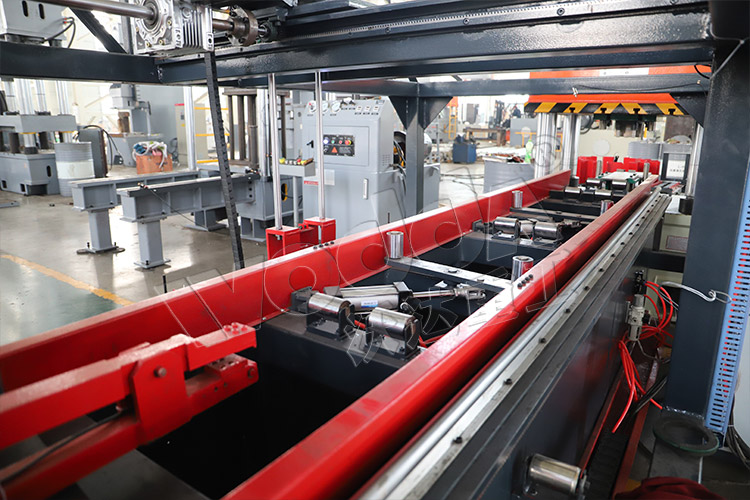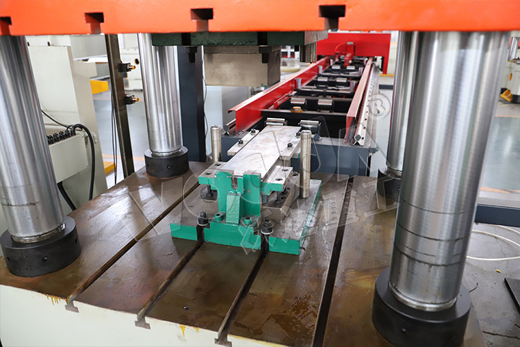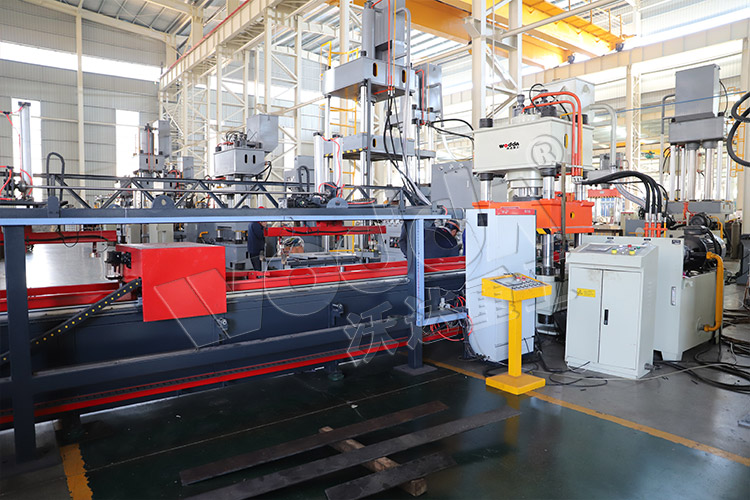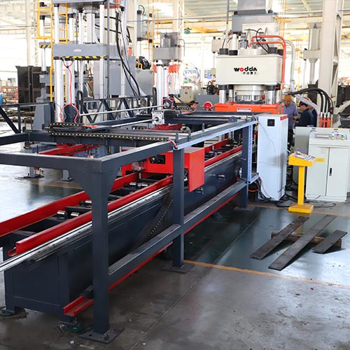 山东沃达重工研发的400吨锚杆托盘自动化生产线,采用长板伺服自动送料,一次性剪断和压型,自动化程度高,生产效率高,安全可靠,使用范围广,本设备也可广泛应用在工业、金属加工,建筑等领域对管材、型材、板材、杆材等大批量下料加工。其中,400吨锚杆托盘液压机采用三梁四柱式结构设计,结构紧凑,动作灵敏可靠,速度快,能耗小,噪音低,压力和行程可在规定的范围内任意调节,操作简单。可以根据锚杆托盘规格尺寸,定做各种吨位的锚杆托盘液压机,且造价成本要比框架式结构液压机的低,是目前较为理想的锚杆托盘生产设备。