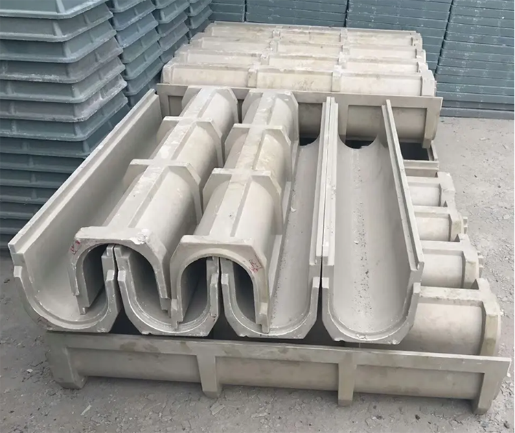 U型排水沟生产工艺是将一定量的经过一定预处理的模压料放入预热的排水沟液压机压模内,施加较高的压力使模压料充满模腔。在预定的温度条件下,模压料在模腔内逐渐固化,然后将SMC产品从压模内取出,再进行必要的辅助加工即得到U型排水沟。