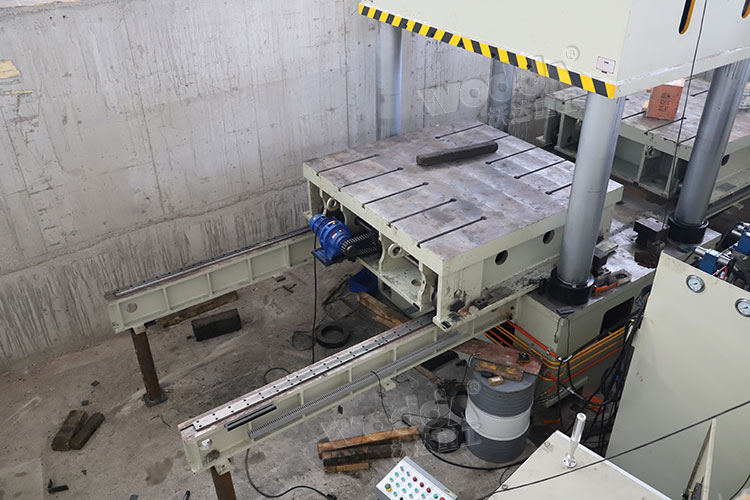 本机是一台1500吨四柱液压机,三梁四柱式结构,四缸设计样式,台面1800x1800mm,滑块行程2000mm,主要由机身、滑块、主油缸、移动工作台、润滑装置、加热装置、行程限位装置、液压动力系统及电力控制系统等部位组成。四柱式结构机身设计,整机刚性好、精度高、操作简单方便。配合双工作台设计,提高生产效率。成型温度、压力、速度、加压时间全部都可以在触摸屏设定、调节,实现自动控制;预压压力、速度均可调。