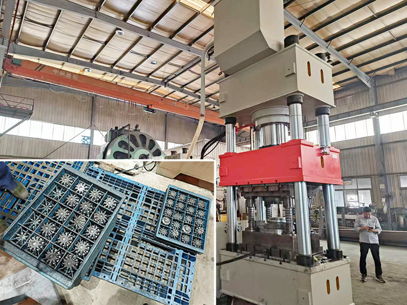 冷挤压成型液压机工作原理是,将各种软质金属(如铜、铝及铝合金等)的坯体,在常温下,利用冷挤压成型液压机的高压,通过模具的配合,压制成需要的形状。冷挤压成型液压机的结构形式有框架式液压机和四柱液压机,以四柱液压机为主。常用的规格有500吨液压机、630吨四柱液压机、800吨冷挤压成型液压机和1000吨冷挤压成型液压机等。下图是一款在客户现场的冷挤压成型液压机,主要用于压制新能源汽车的传动轴。