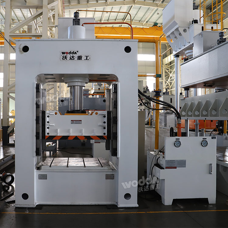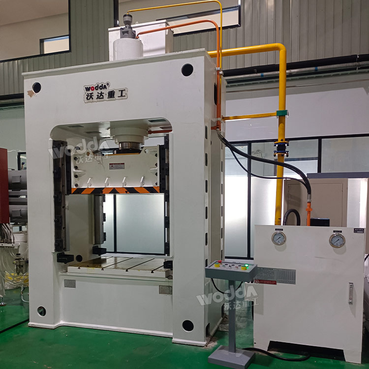 150吨框架式液压机机身采用整体框架式结构,X型导轨导向,面积大、间隙小,热胀补偿性佳,抗偏载能力强,精度保持性好。液压机工作台大,速度快,产品压力均匀,采用PLC+伺服自动控制,操作方便,工作压力和行程可根据工艺需要在规定范围内调节,采用安全锁紧结构,工作台前可安装光电保护装置,保证操作、换模、维修时人身安全。