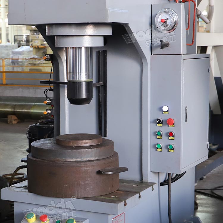 2、100吨单臂液压机的压制缸吨位由一只活塞缸实现,缸体为优质锻钢,活塞杆表面经中频淬火处理,硬度高,使用寿命长。油缸主要密封件采用优质密封圈,确保密封可靠。
