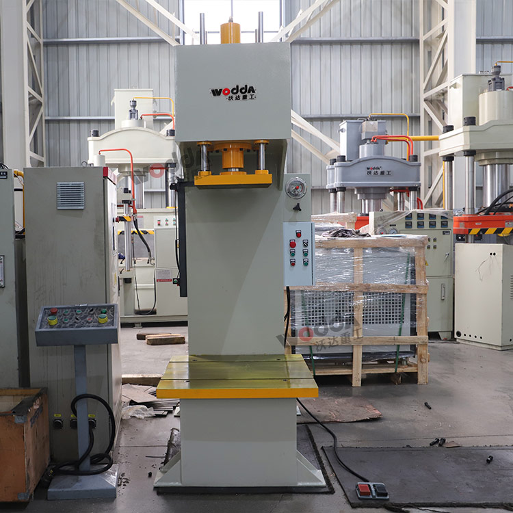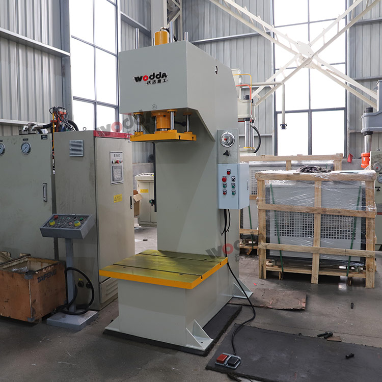 10吨单柱液压机也叫单臂液压机,机身为C型或者弓形,采用全钢板CO2焊接,焊接后通过回火时效处理,确保机身不变形。液压系统位于机身内,外型美观,操作方便,可扩宽工作范围,利用三面空间加长液压缸行程(可选装),机器的工作压力、压制速度和滑块行程,均可根据工艺需要进行调整,并能完成顶出工艺、不带顶出工艺、拉伸工艺三种工艺方式,每种工艺又为定压、定程两种工艺动作供选择,定压成型工艺在压制后具有保压、延时、自动回程。