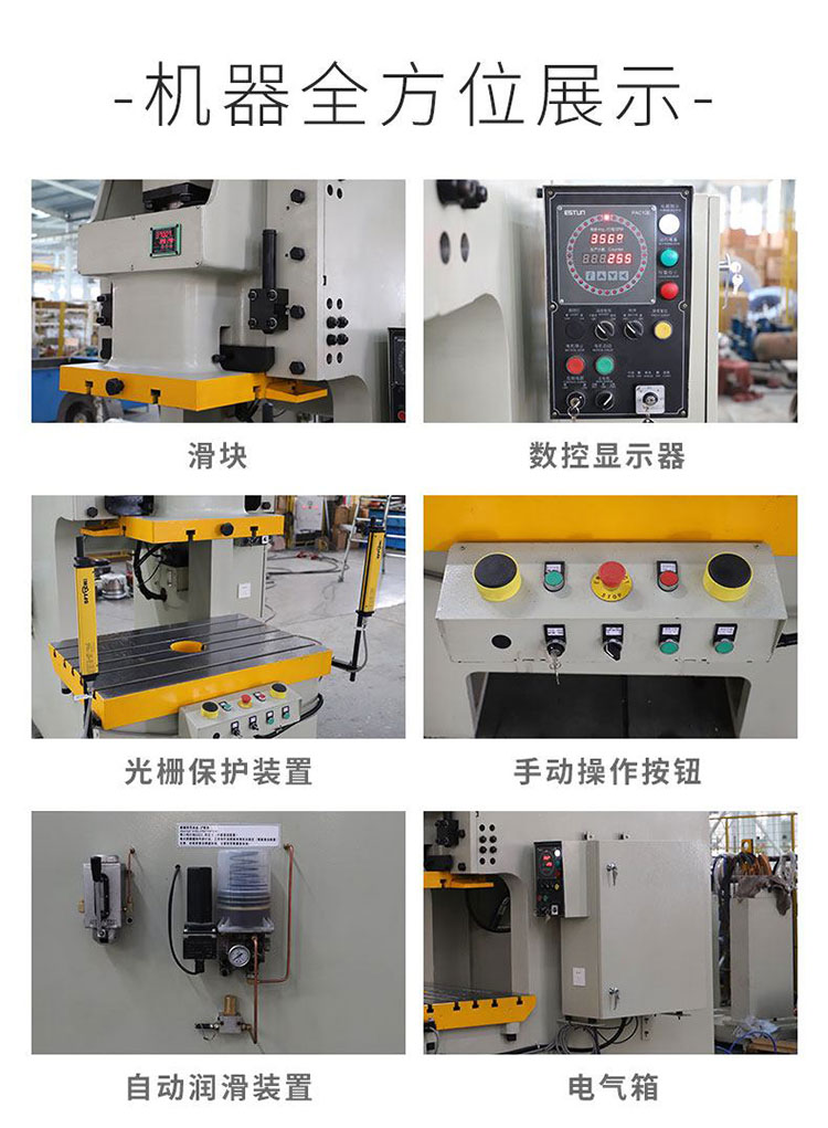 离合器/刹车器装置高度灵敏,再加上国外进口双联电磁阀和过负荷保护装置,确保冲床滑块运转及停止的精确性玉安全性。