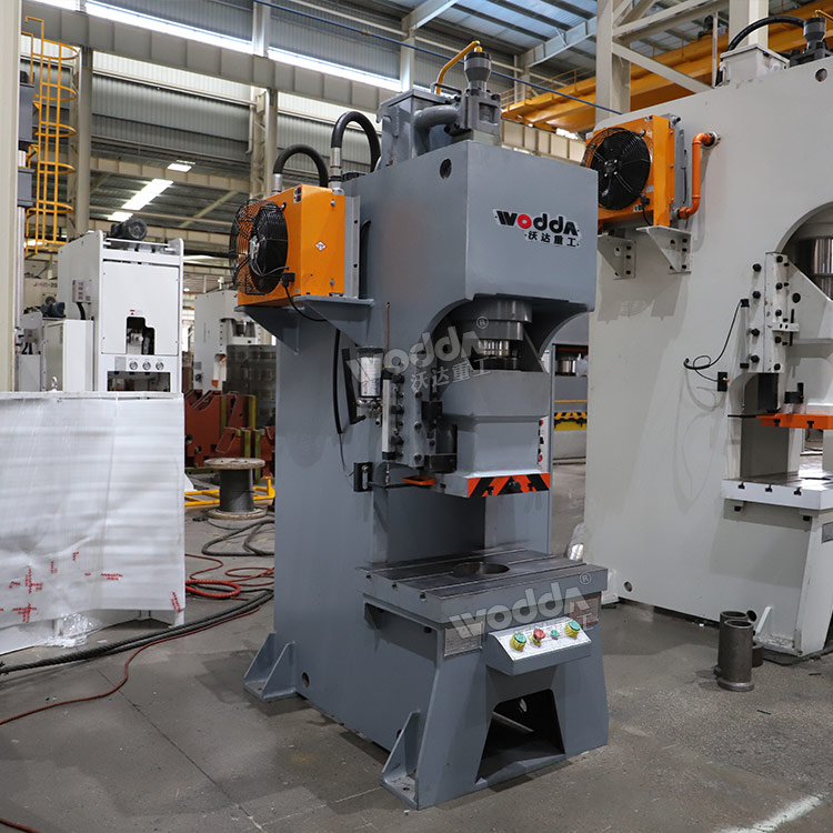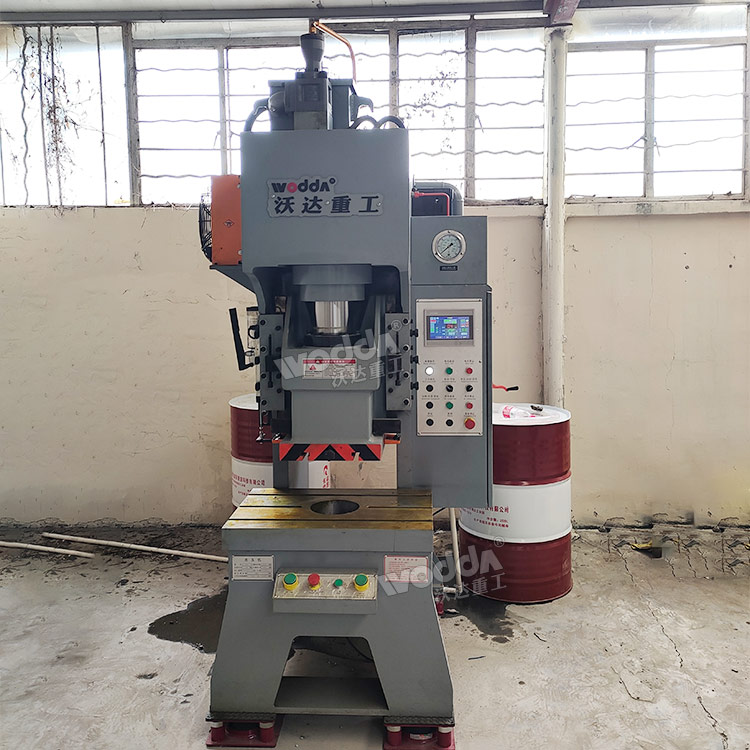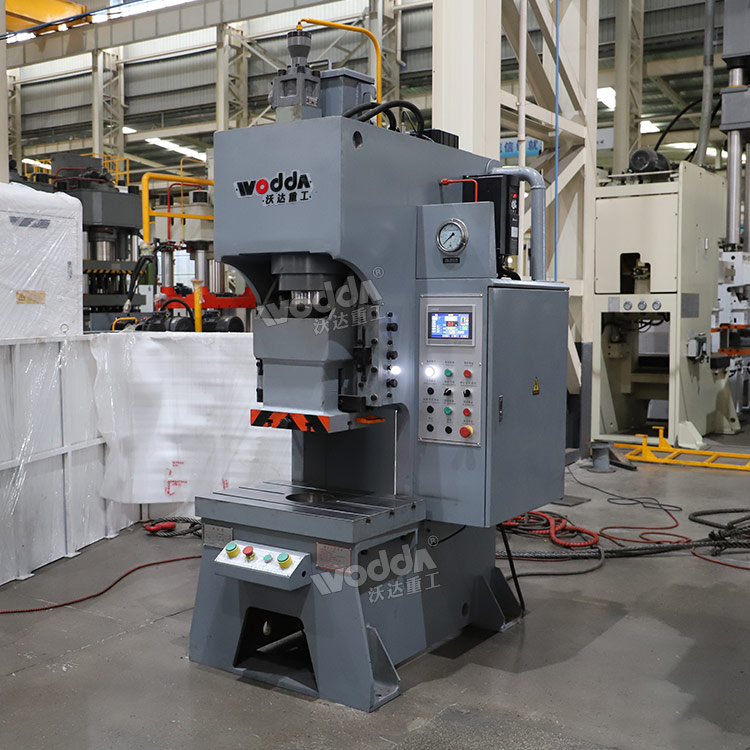 20吨液压冲床是山东沃达重工设计生产的一款伺服油压冲床,机身为开式C型结构,根据客户生产工艺需要,配PLC+伺服系统,可任意设定压制力大小,不产生超载,实现各工步的保压、延时要求。具有速度快、结构新颖、性能可靠、功能齐全、生产效率高等优点,是机械冲床的换代新产品。
