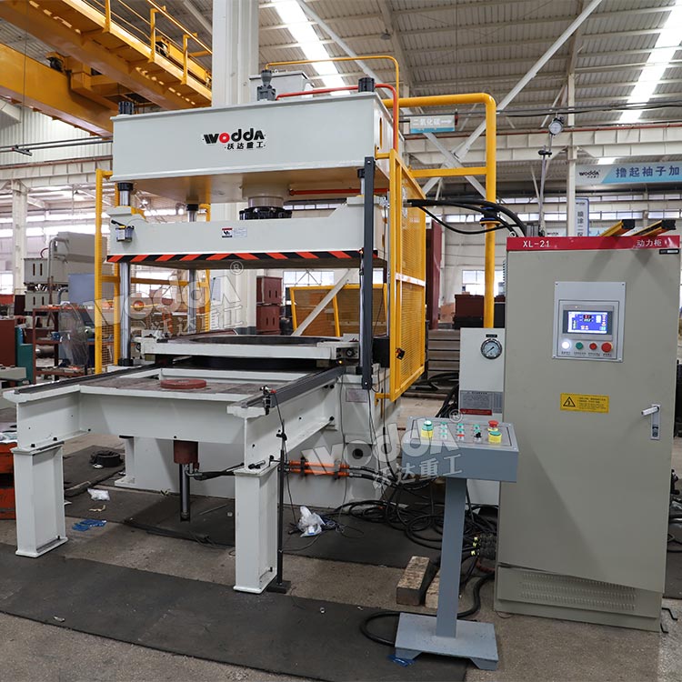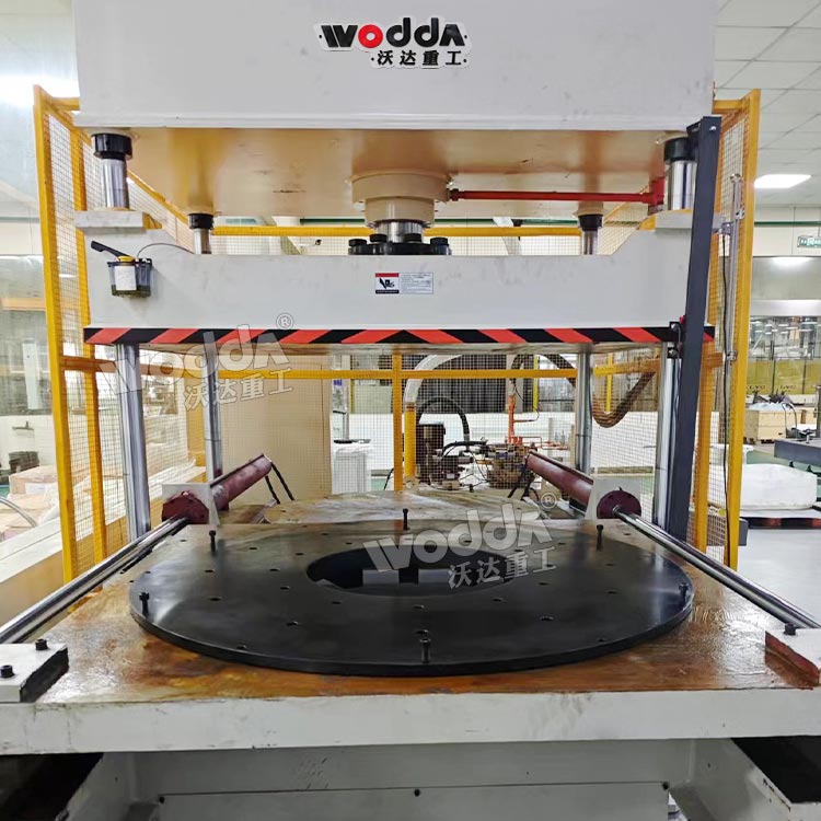 100吨三梁四柱液压机带移动工作台可以更好满足工件加工工艺的要求,降低劳动强度,方便上下提升工件,提高工作效率。同时为满足工件自重问题,移动工作台采用大轴承设计,运行稳定、牢靠。载重能力可根据工作台做调整。