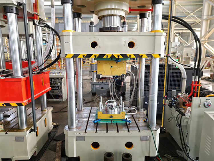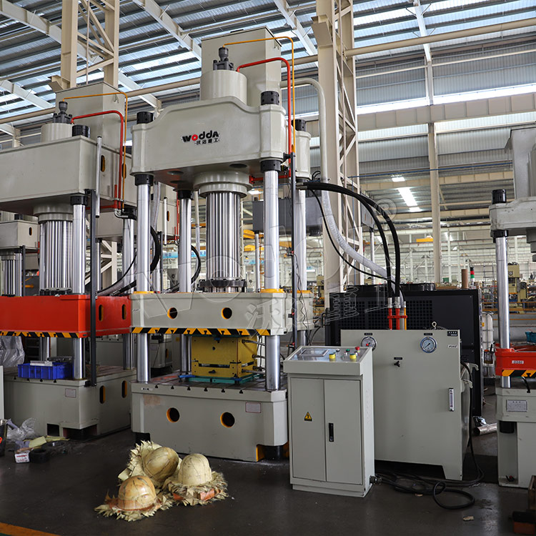 315吨防弹头盔成型液压机采用三梁四柱式结构,台面800*800mm,结构简单稳固便于上下料,设备有手动、自动、半自动三种操作模式,一键切换,操作便捷;PLC控制,对压力和行程进行精确控制,实现定压定时、保压保时的工艺动作。以下是315吨四柱液压机模压复合材料防弹头盔图: