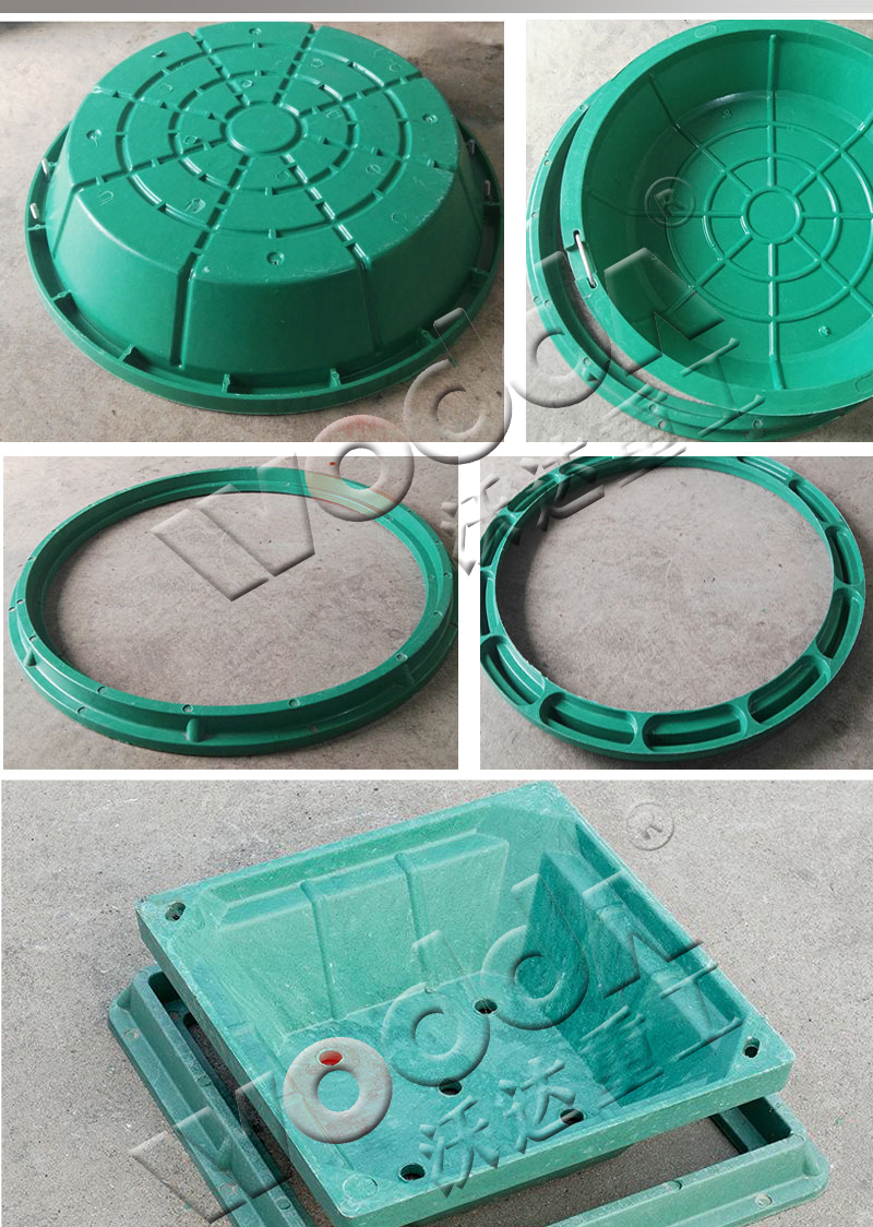 草盆井盖采用玻璃纤维树脂复合材料,加热后经315吨液压机模压而成,具有良好的强度和耐腐蚀性能,比同类铸铁、水泥类井盖更轻便、环保、耐用,同时无法再生利用,从根本上解决了偷盗的问题;常见的草盆井盖有圆形、正方形和长方形三种,一般规格有直径400mm、500mm、600mm、700mm、800mm、900mm的圆形草盆井和40cm*40cm、50cm*50cm、60cm*60cm、70cm*70cm、80cm*80cm的方形井盖。因为承重力要远远低于传统复合井盖,所以按照国家规定,草盆井只能填满泥土种花种草,不能当做井盖使用,不能安放至有车辆行人往来的道路上。