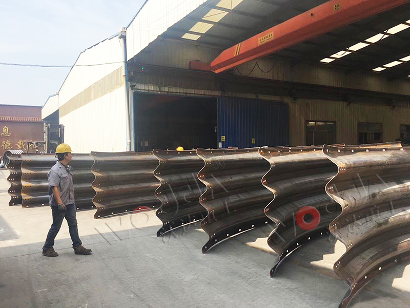 金属波纹管涵是将2.5-7.0mm薄钢板板面压成波纹钢板后,再用辊压机卷制成管节,可以增加管节的刚度和管轴压力的抵抗强度,用此种管节修建成的涵洞称为波纹管涵。为防止波纹管涵锈蚀,波纹管节内、外表面和紧固连接螺栓都进行了热浸镀锌处理,镀锌层平均厚度≥63um。波纹管涵与钢筋混凝土管涵相比,具有管节薄,重量轻,便于运输存放,施工工艺简单,组装快速,工期短等优点。